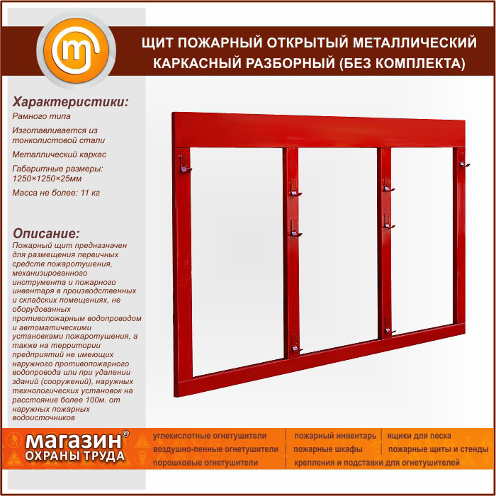 Щит пожарный открытый металлический каркасный разборный (без комплекта) в Кызыле купить