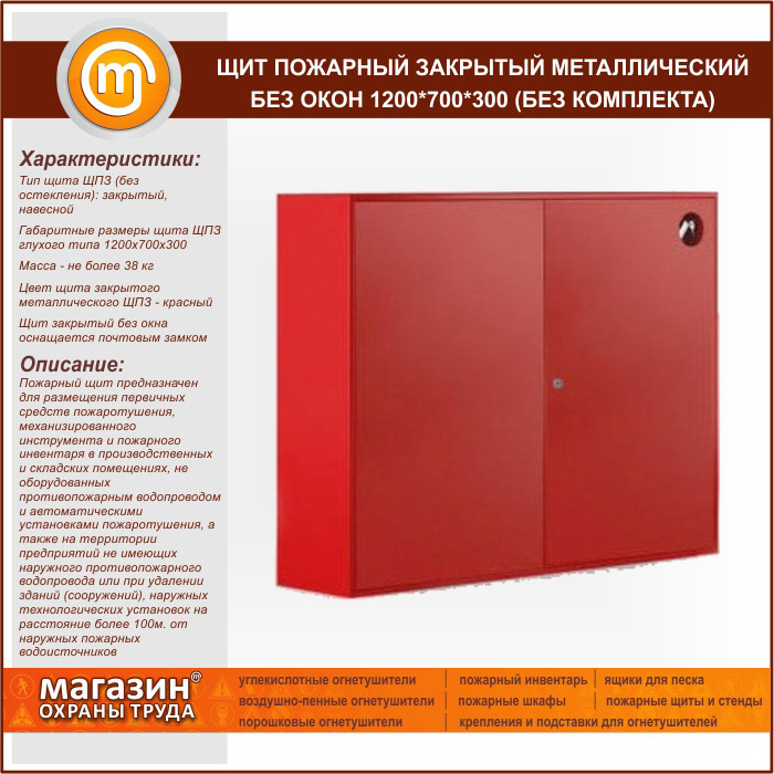 Щит пожарный закрытый металлический без окон 1200*700*300 (без комплекта) в Кызыле купить