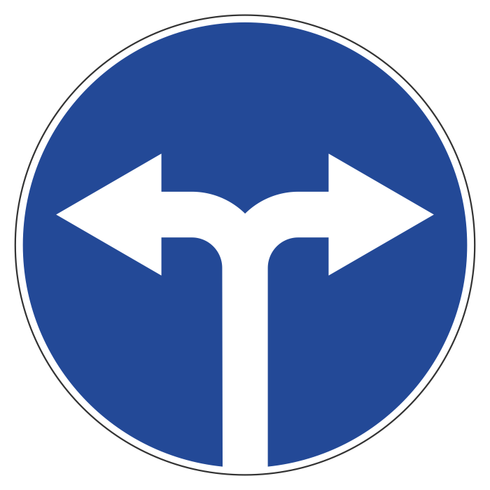 Дорожный знак 4.1.6 «Движение направо или налево» (металл 0,8 мм, I типоразмер: диаметр 600 мм, С/О пленка: тип А инженерная) в Кызыле купить