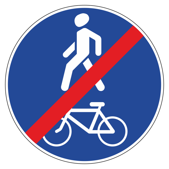 Дорожный знак 4.5.3 «Конец пешеходной и велосипедной дорожки с совмещенным движением» (металл 0,8 мм, II типоразмер: диаметр 700 мм, С/О пленка: тип Б высокоинтенсивная) в Кызыле купить