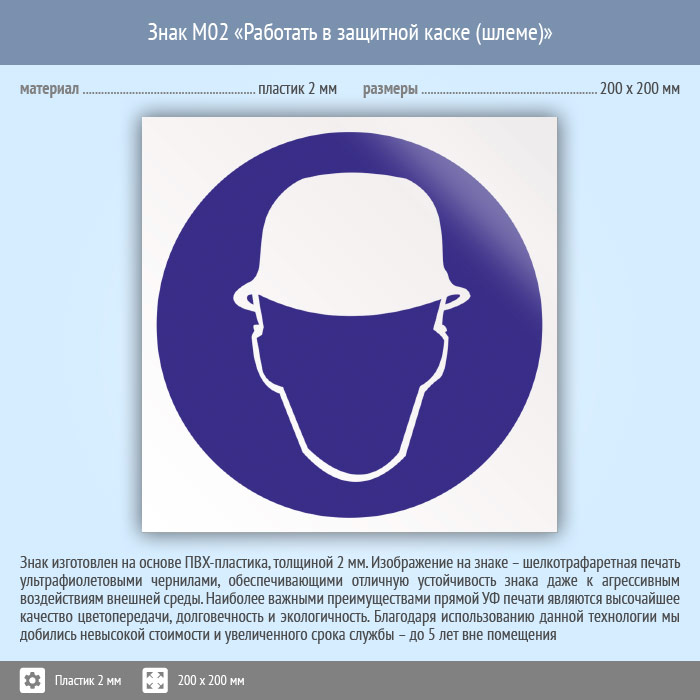 Знак M02 «Работать в защитной каске (шлеме)» (пластик, 200х200 мм) в Кызыле купить