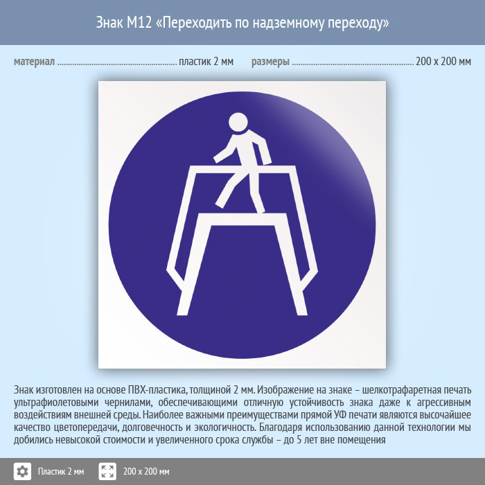 Знак M12 «Переходить по надземному переходу» (пластик, 200х200 мм) в Кызыле купить