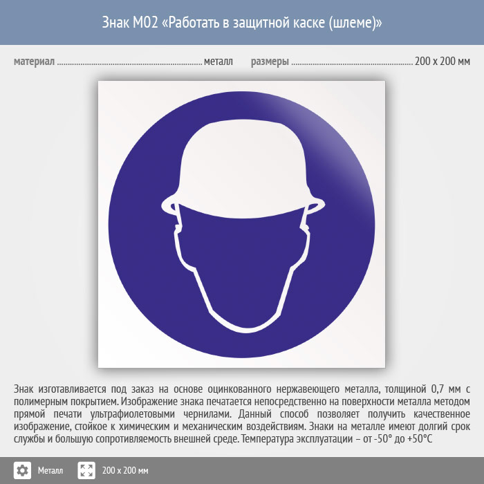 Знак M02 «Работать в защитной каске (шлеме)» (металл, 200х200 мм) в Кызыле купить