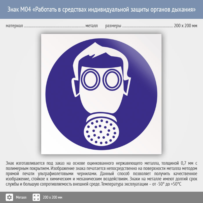 Знак M04 «Работать в средствах индивидуальной защиты органов дыхания» (металл, 200х200 мм) в Кызыле купить