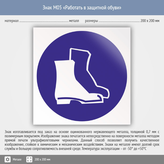 Знак M05 «Работать в защитной обуви» (металл, 200х200 мм) в Кызыле купить