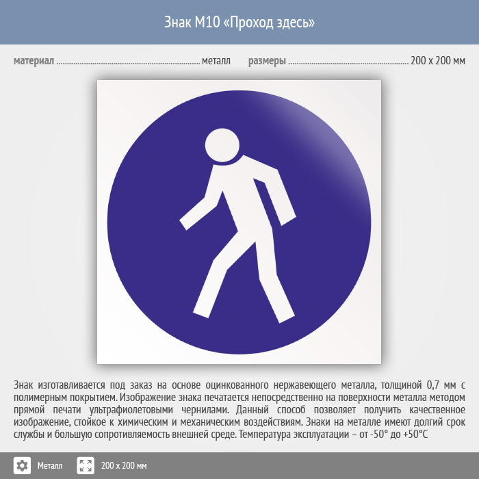 Знак M10 «Проход здесь» (металл, 200х200 мм) в Кызыле купить