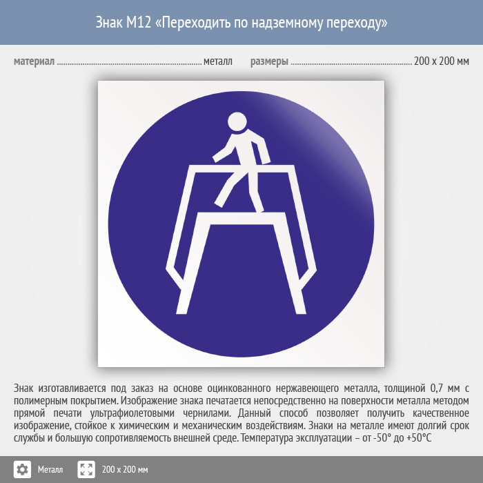 Знак M12 «Переходить по надземному переходу» (металл, 200х200 мм) в Кызыле купить