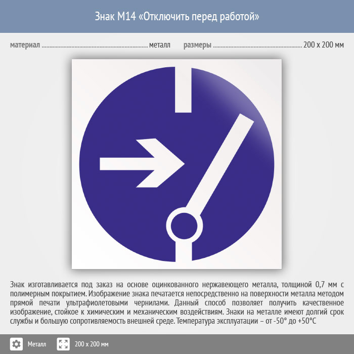 Знак M14 «Отключить перед работой» (металл, 200х200 мм) в Кызыле купить