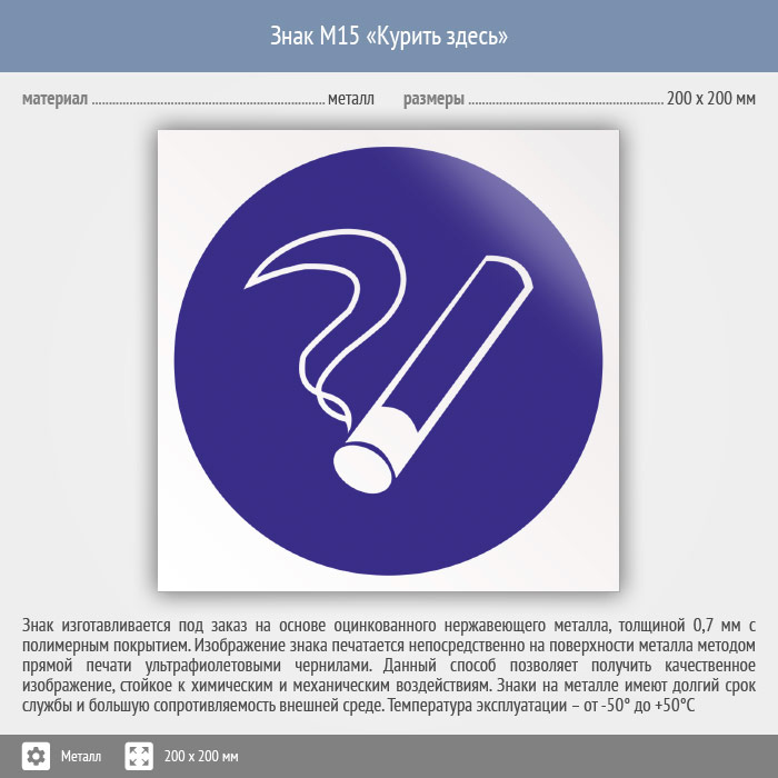 Знак M15 «Курить здесь» (исключен) (металл, 200х200 мм) в Кызыле купить