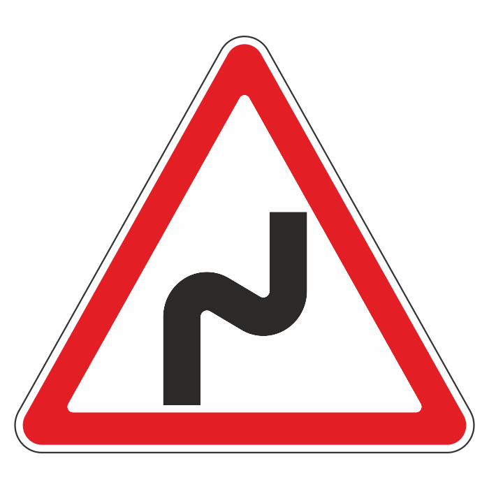 Дорожный знак 1.12.1 «Опасные повороты с первым поворотом направо» (металл 0,8 мм, II типоразмер: сторона 900 мм, С/О пленка: тип Б высокоинтенсивная) в Кызыле купить