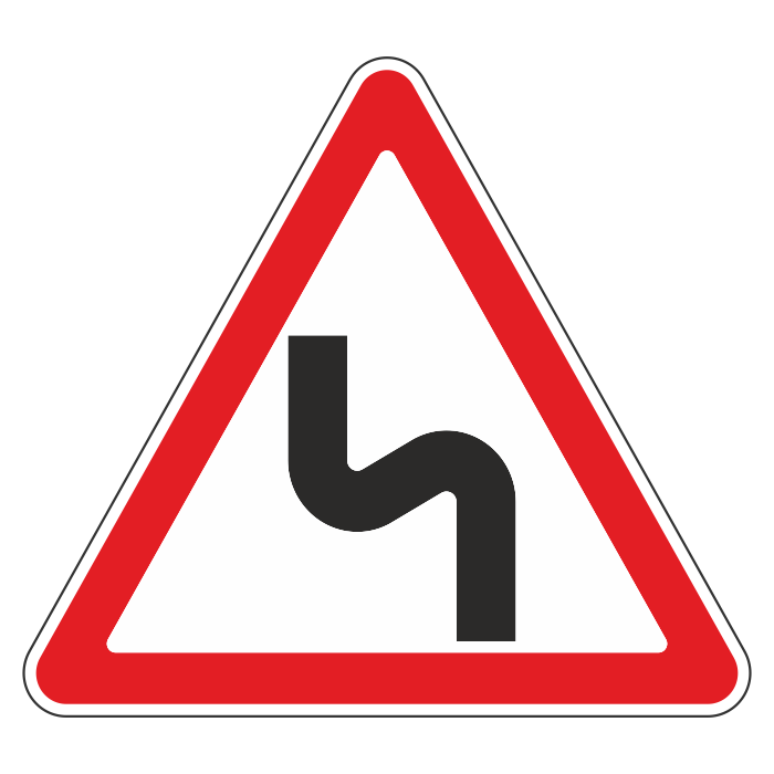 Дорожный знак 1.12.2 «Опасные повороты с первым поворотом налево» (металл 0,8 мм, III типоразмер: сторона 1200 мм, С/О пленка: тип В алмазная) в Кызыле купить