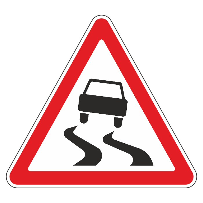 Дорожный знак 1.15 «Скользкая дорога» (металл 0,8 мм, IV типоразмер: сторона 1500 мм, С/О пленка: тип А коммерческая) в Кызыле купить