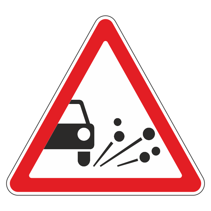 Дорожный знак 1.18 «Выброс гравия» (металл 0,8 мм, II типоразмер: сторона 900 мм, С/О пленка: тип В алмазная) в Кызыле купить
