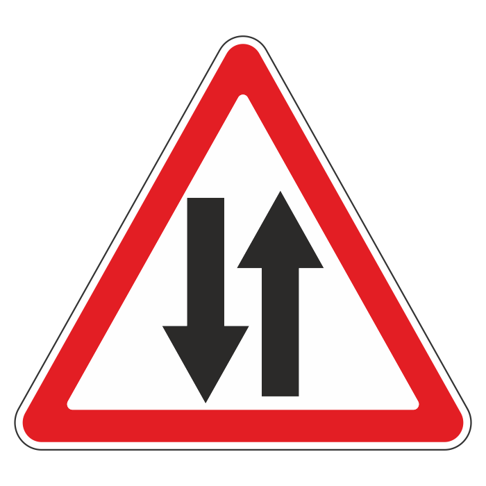 Дорожный знак 1.21 «Двустороннее движение» (металл 0,8 мм, III типоразмер: сторона 1200 мм, С/О пленка: тип А коммерческая) в Кызыле купить