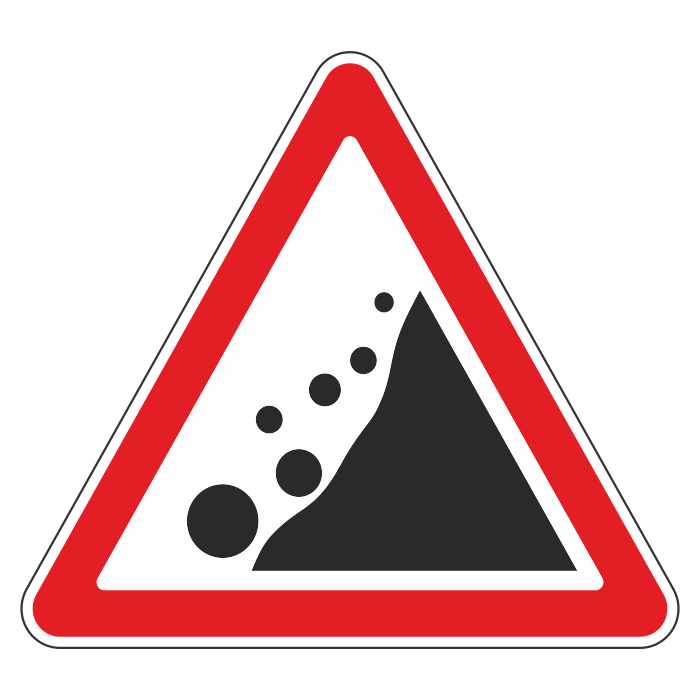 Дорожный знак 1.28 «Падение камней» (металл 0,8 мм, II типоразмер: сторона 900 мм, С/О пленка: тип А инженерная) в Кызыле купить