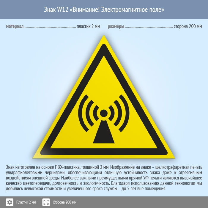 Знак W12 «Внимание! электромагнитное поле» (пластик, сторона 200 мм) в Кызыле купить