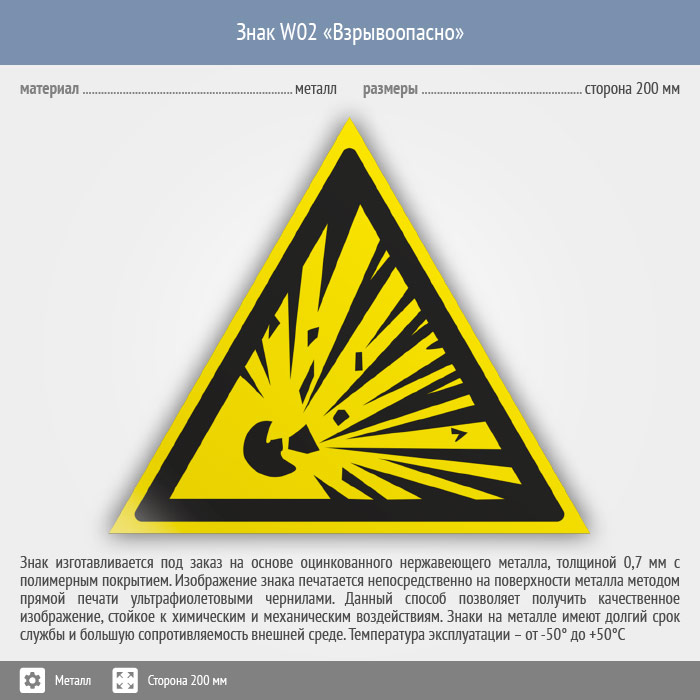 Знак W02 «Взрывоопасно» (металл, сторона 200 мм) в Кызыле купить
