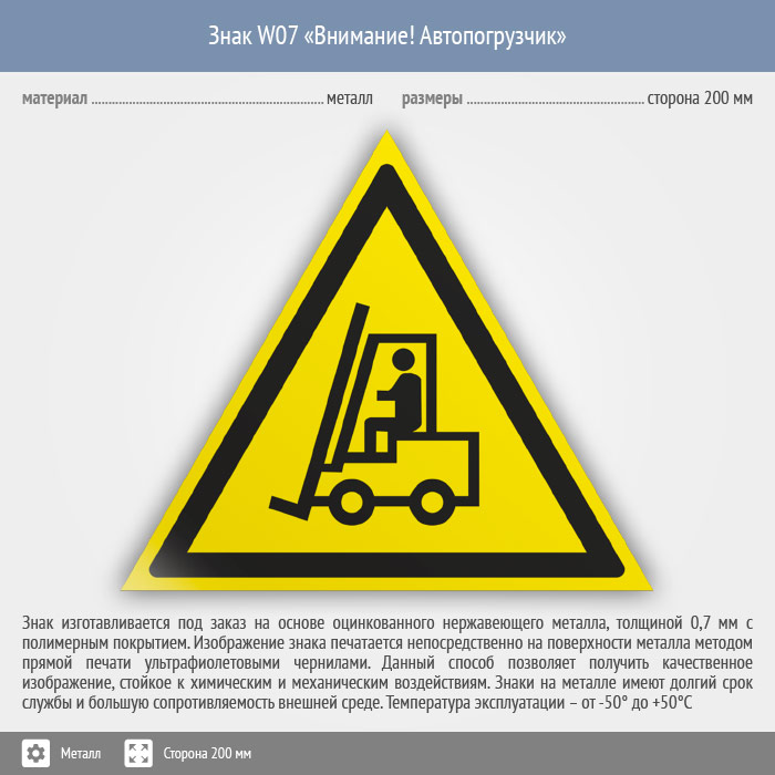 Знак W07 «Внимание! автопогрузчик» (металл, сторона 200 мм) в Кызыле купить