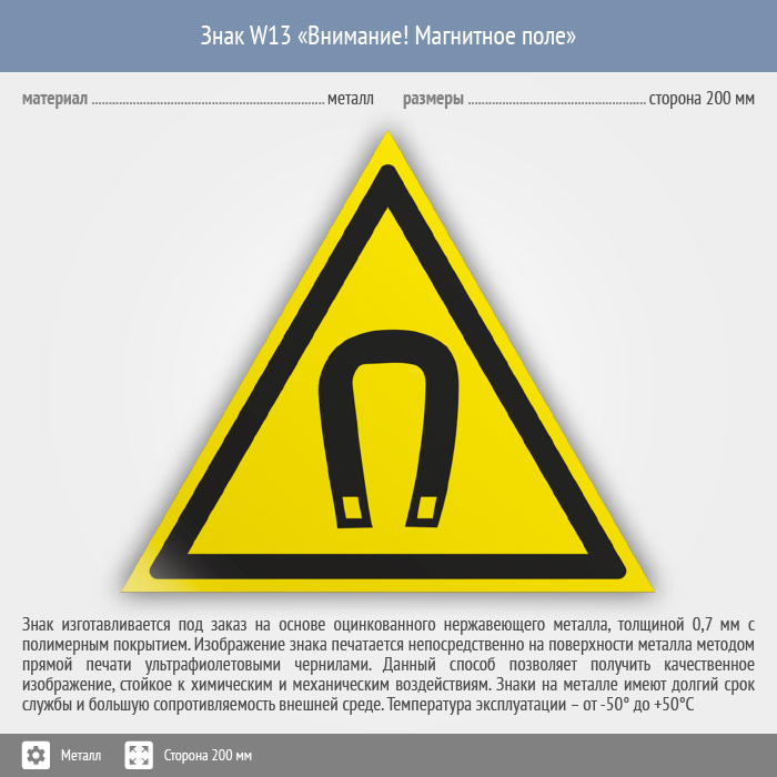 Знак W13 «Внимание! магнитное поле» (металл, сторона 200 мм) в Кызыле купить