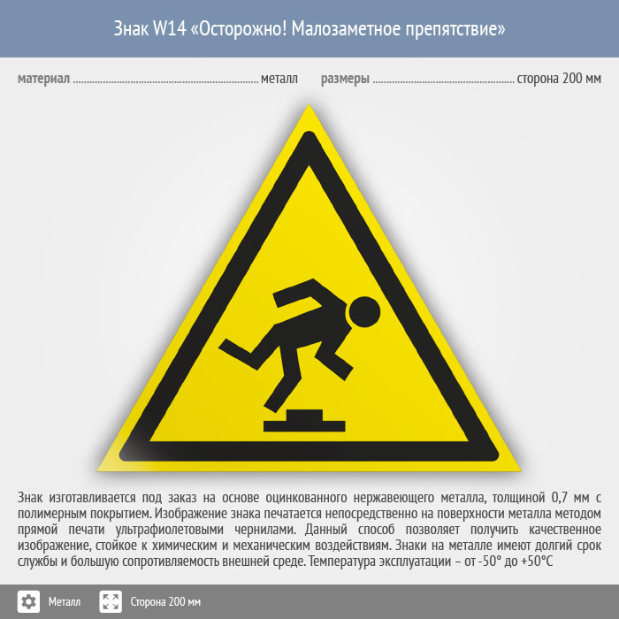 Знак W14 «Осторожно! малозаметное препятствие» (металл, сторона 200 мм) в Кызыле купить