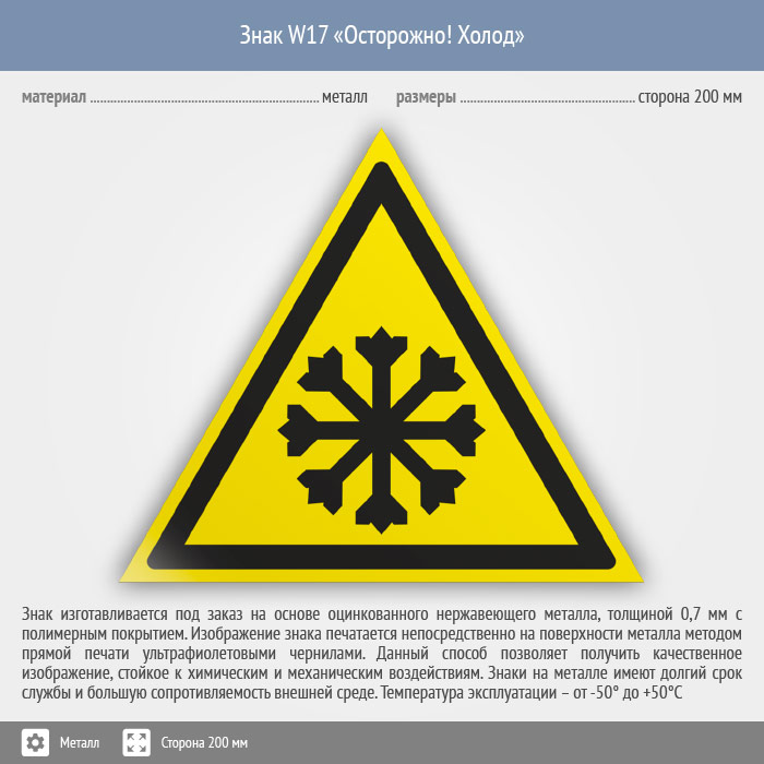 Знак W17 «Осторожно! холод» (металл, сторона 200 мм) в Кызыле купить