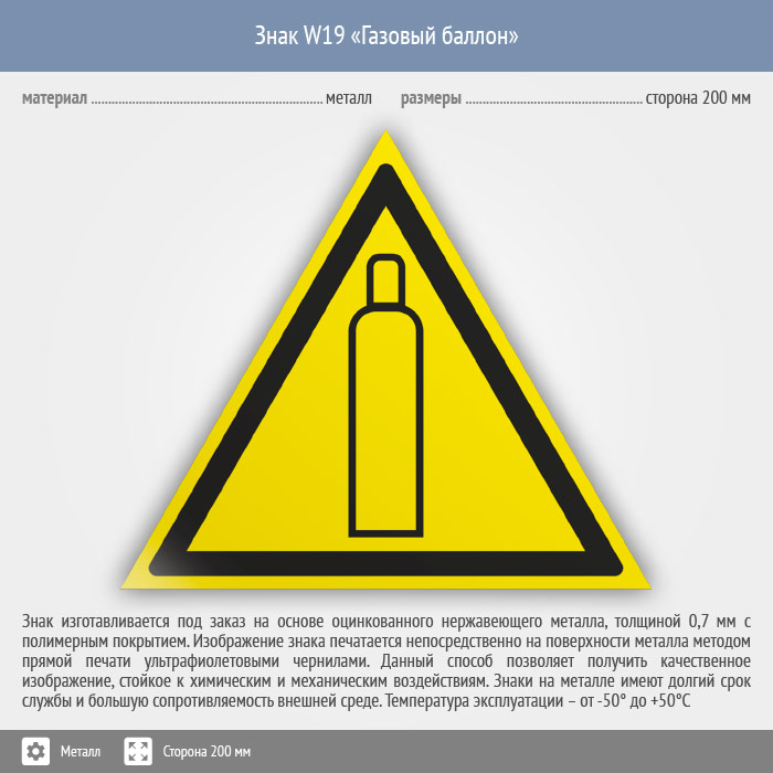 Знак W19 «Газовый баллон» (металл, сторона 200 мм) в Кызыле купить