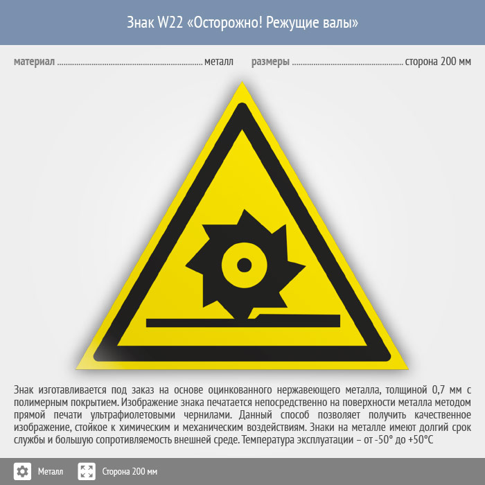 Знак W22 «Осторожно! режущие валы» (металл, сторона 200 мм) в Кызыле купить