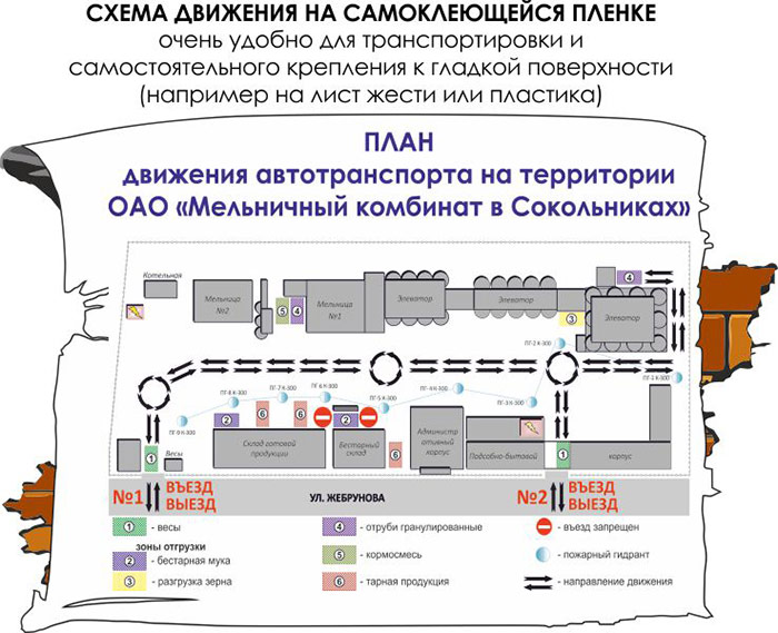 Схема движения автотранспорта (3000х2000 мм, самоклеящаяся плёнка) в Кызыле купить