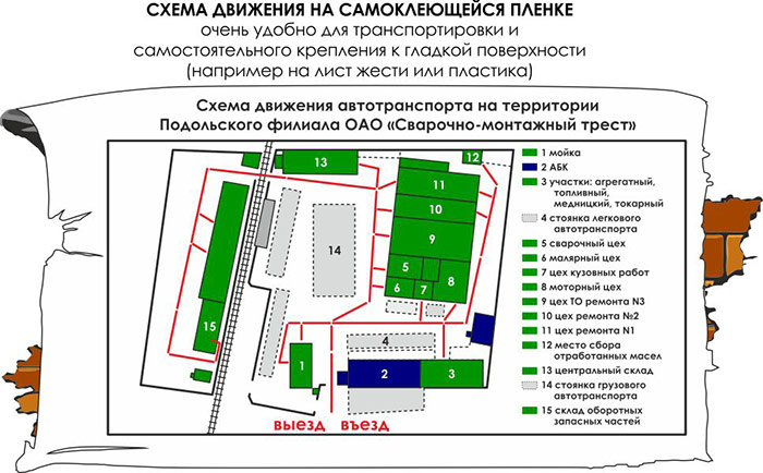 Схема движения автотранспорта (3000х1500 мм, самоклеящаяся плёнка) в Кызыле купить