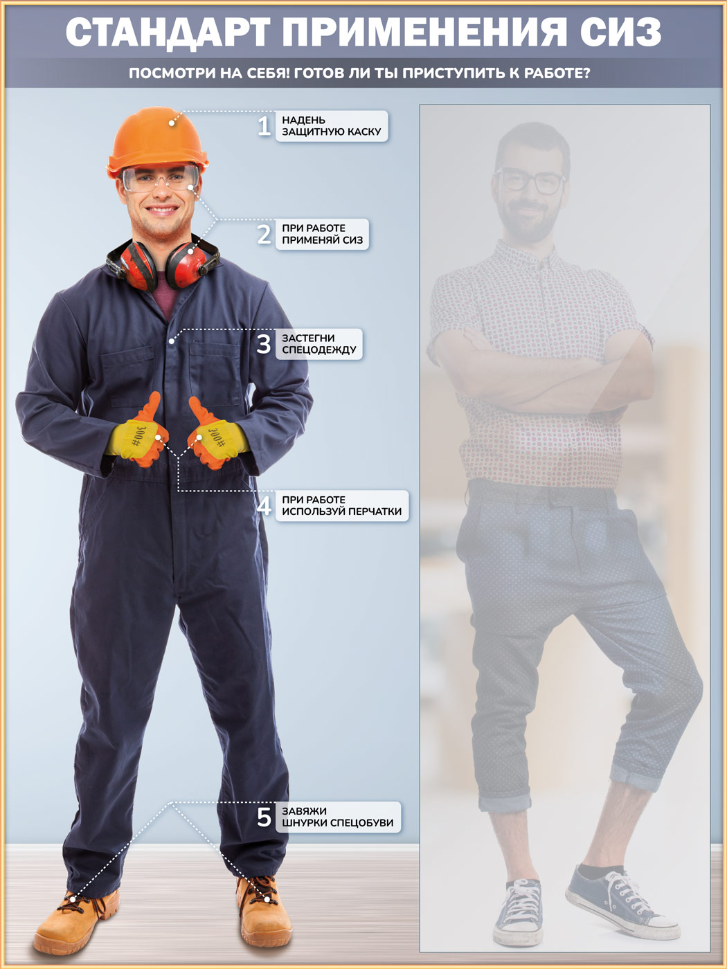 Стенд для демонстрации применения СИЗ с зеркалом, 1500х2000 мм в золотом багете (СПС-01-З) в Кызыле купить