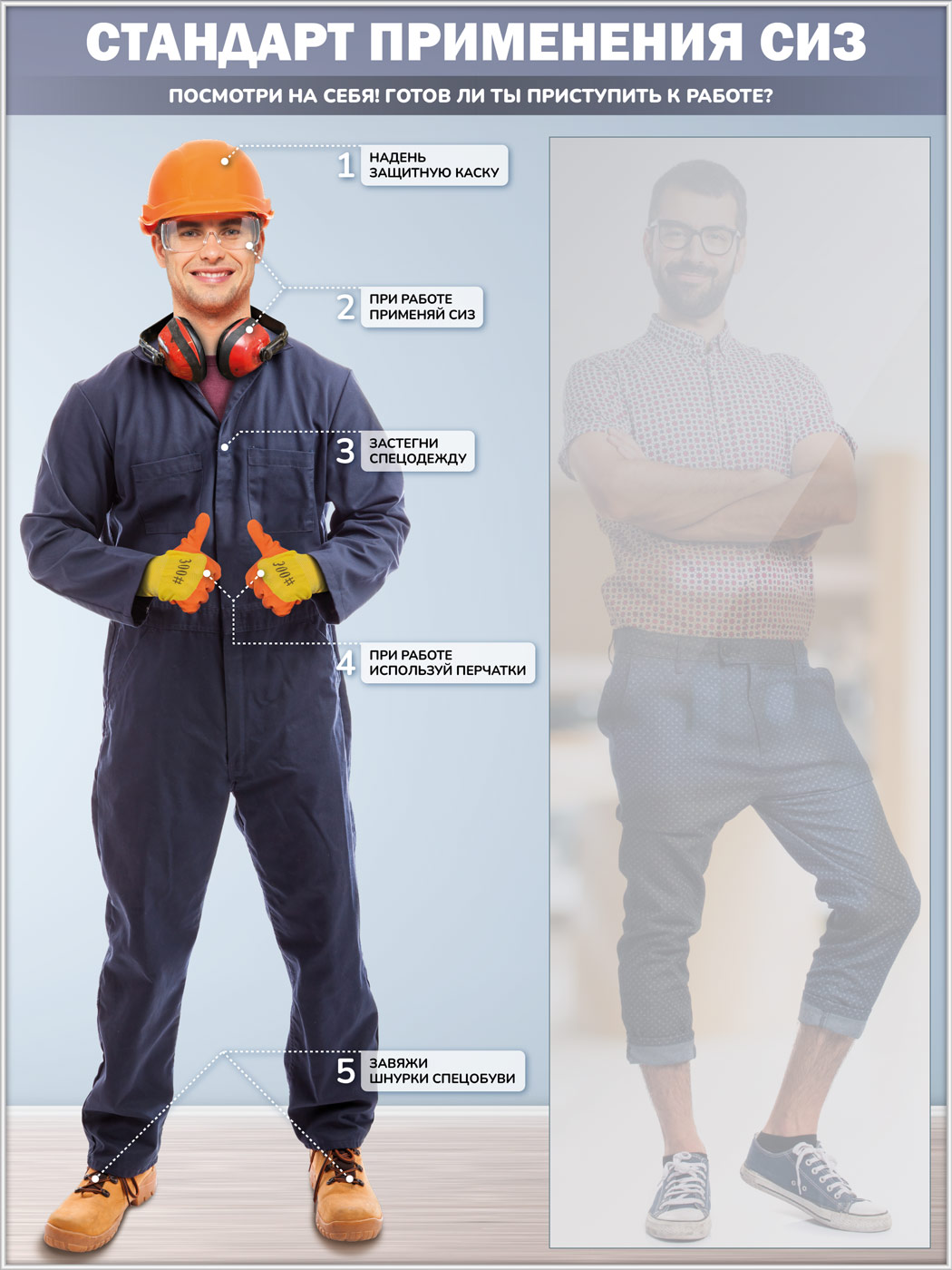 Стенд для демонстрации применения СИЗ с зеркалом, 1500х2000 мм в серебряном багете (СПС-01-С) в Кызыле купить