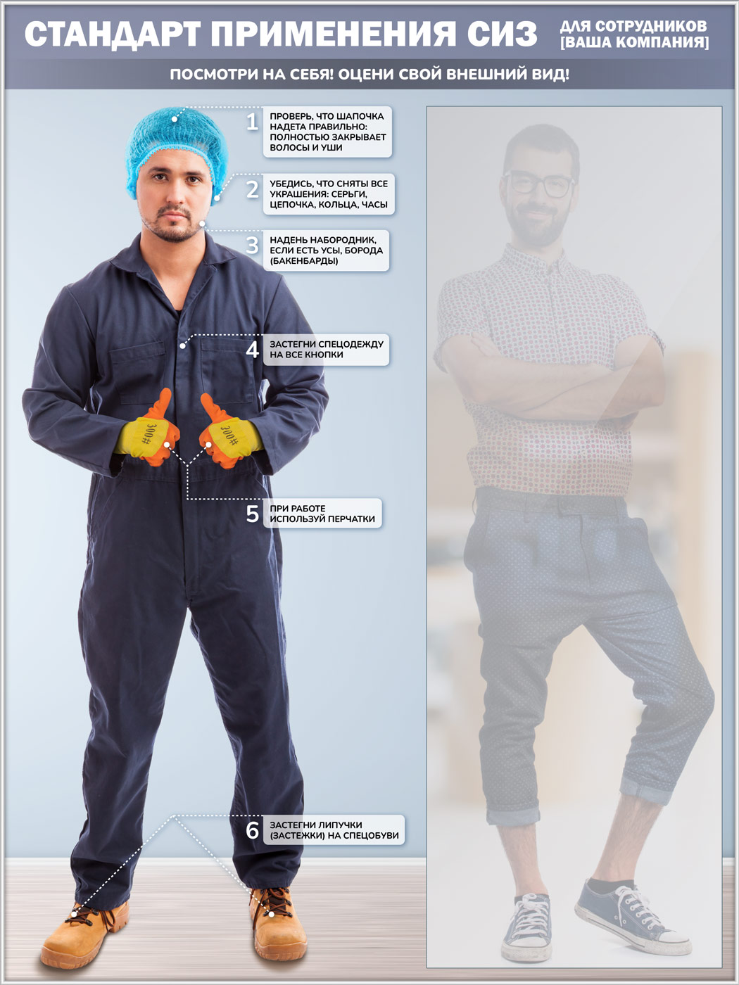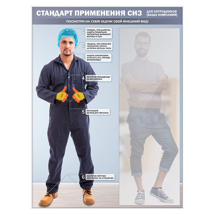 Стенд для демонстрации применения СИЗ с зеркалом, 1500х2000 мм в серебряном багете (СПС-02-С) в Кызыле купить
