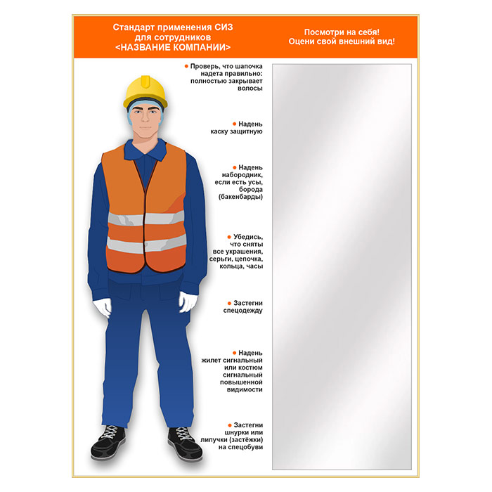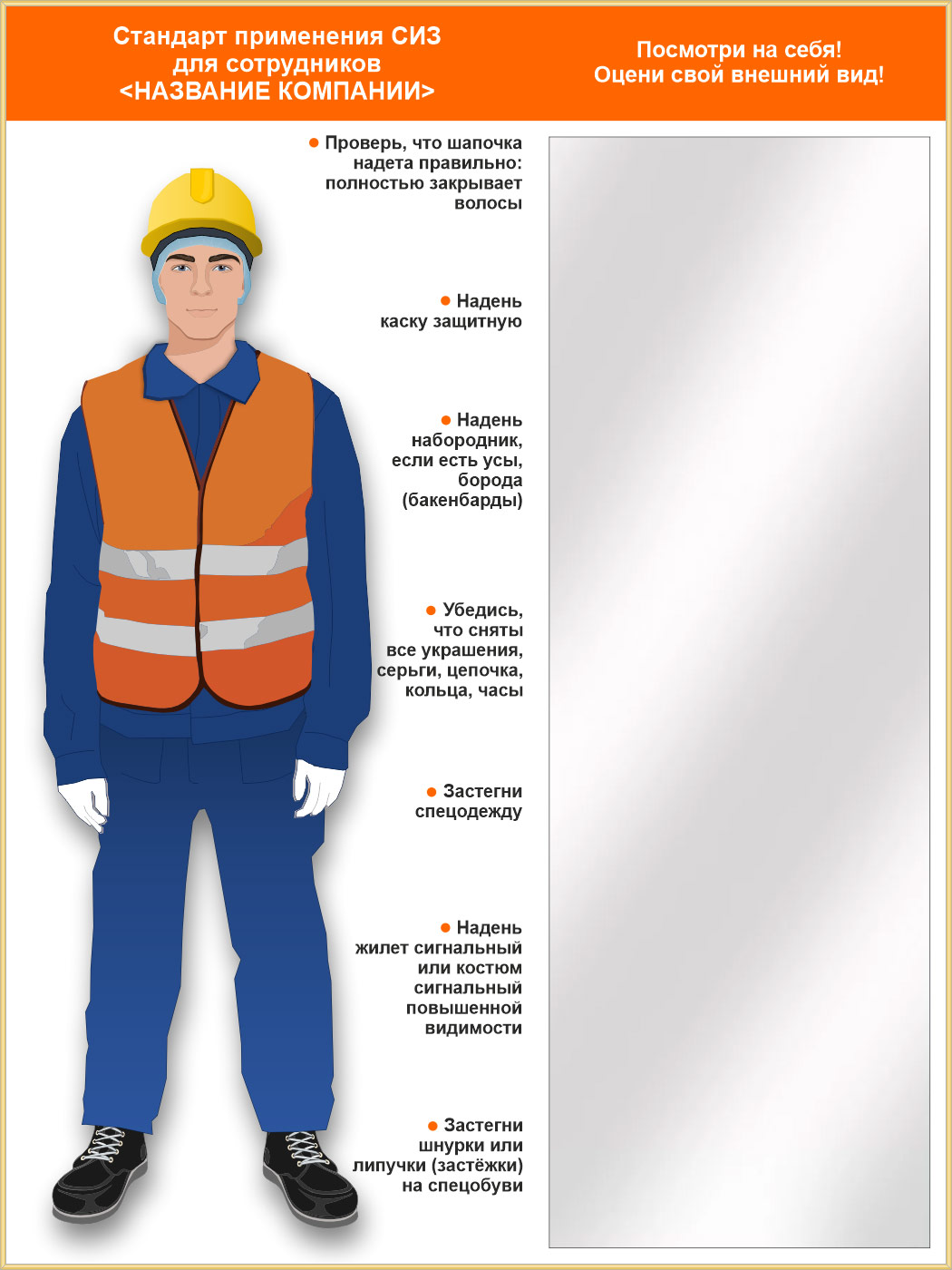 Стенд для демонстрации применения СИЗ с зеркалом, 1500х2000 мм в золотом багете (СПС-02.2-З) в Кызыле купить