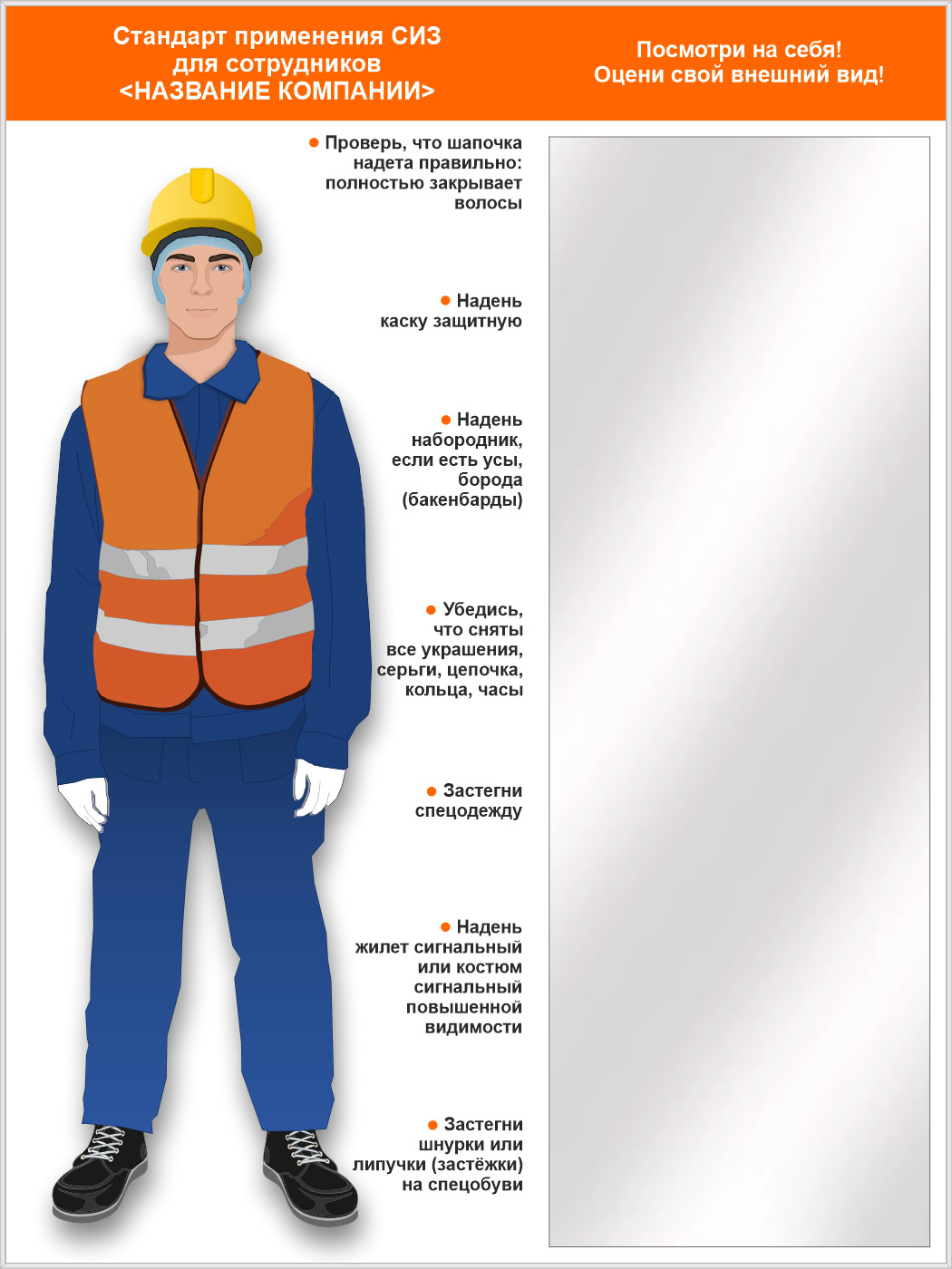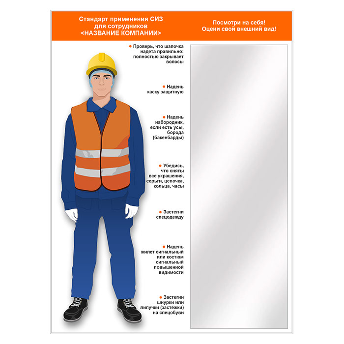 Стенд для демонстрации применения СИЗ с зеркалом, 1500х2000 мм в серебряном багете (СПС-02.2-С) в Кызыле купить