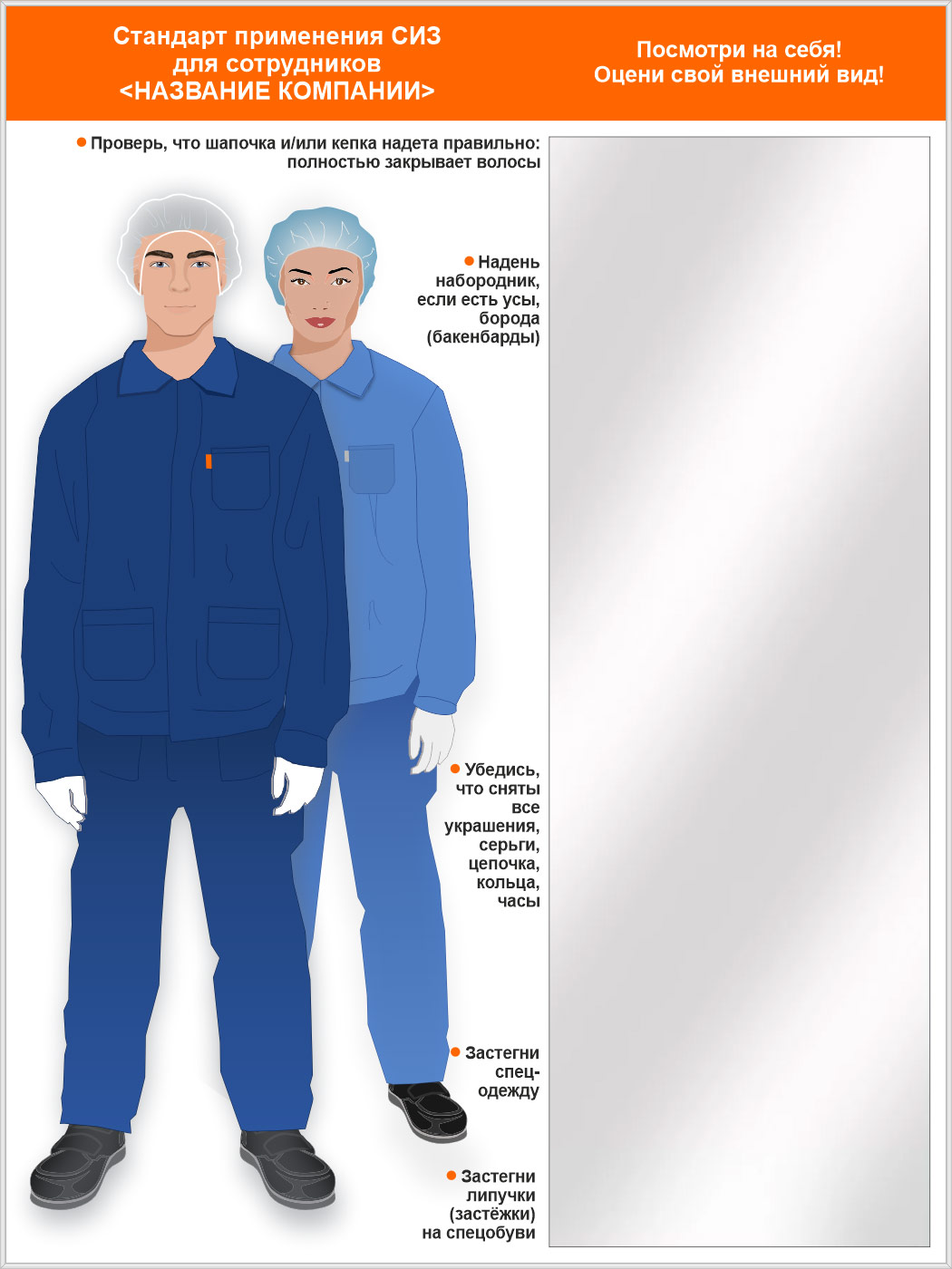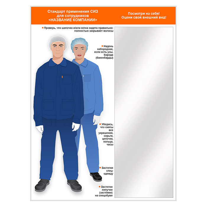 Стенд для демонстрации применения СИЗ с зеркалом, 1500х2000 мм в серебряном багете (СПС-04.2-С) в Кызыле купить