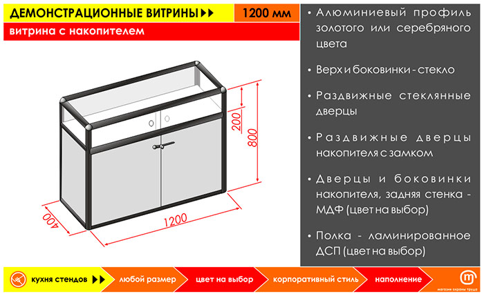Витрина с накопителем, 1200 мм в Кызыле купить