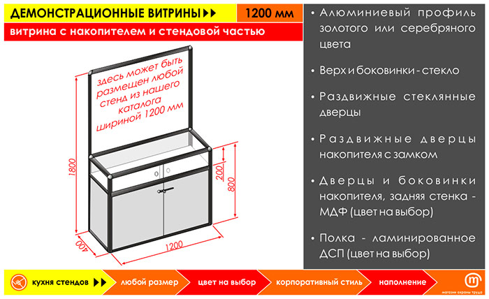 Витрина с накопителем и стендовой частью, 1200 мм в Кызыле купить