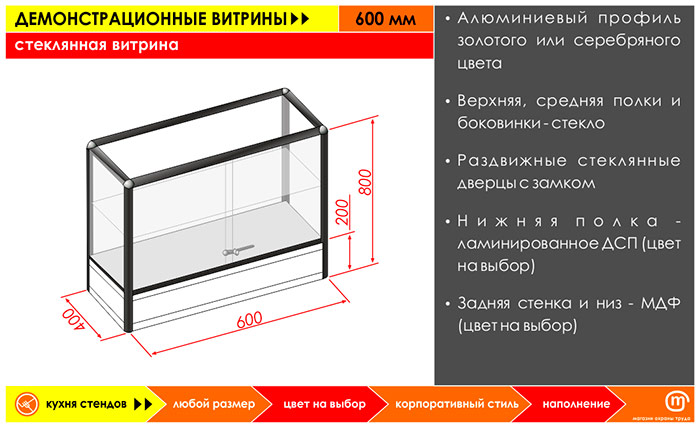 Стеклянная витрина, 600 мм в Кызыле купить