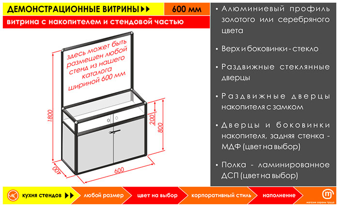 Витрина с накопителем и стендовой частью, 600 мм в Кызыле купить