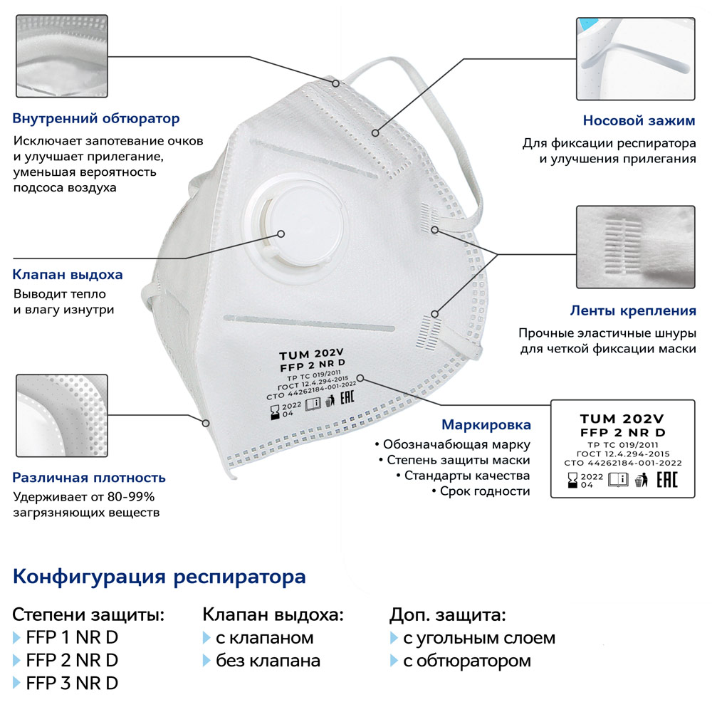 Респиратор противоаэрозольный TUM 202 (FFP2), к-т 10 шт в Кызыле купить
