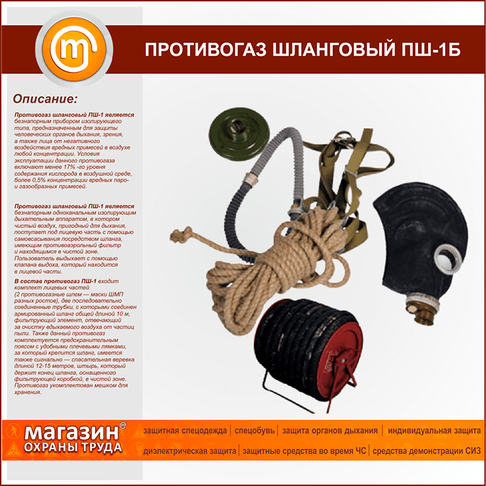 Противогаз шланговый ПШ-1Б | Противогаз шланговый ПШ-1Б |