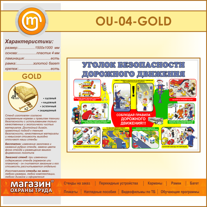 Стенд «Уголок безопасности дорожного движения» (OU-04-GOLD) в Кызыле купить