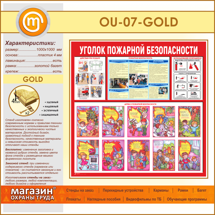 Стенд «Уголок пожарной безопасности» (OU-07-GOLD) в Кызыле купить