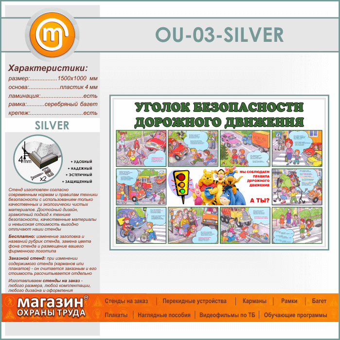 Стенд «Уголок безопасности дорожного движения» (OU-03-SILVER) в Кызыле купить