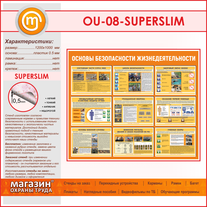 Стенд «Основы безопасности жизнедеятельности» (OU-08-SUPERSLIM) в Кызыле купить