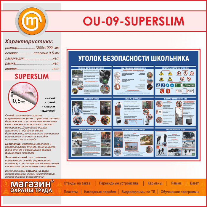 Стенд «Уголок безопасности школьника» (OU-09-SUPERSLIM) в Кызыле купить