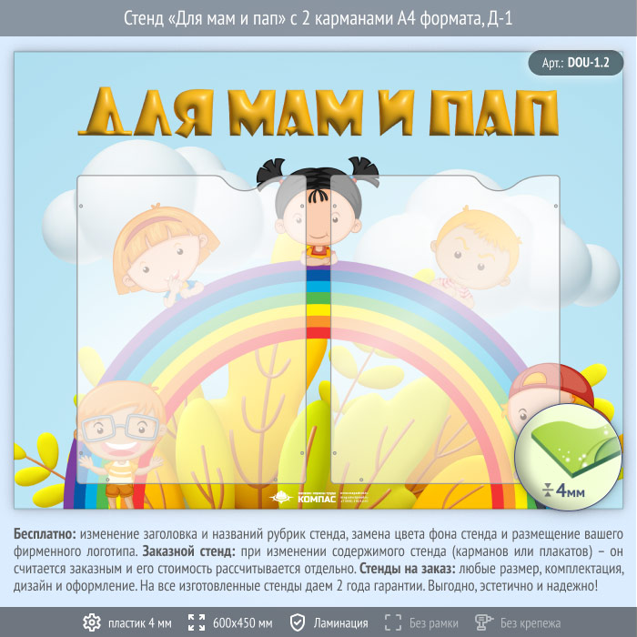 Стенд «Для мам и пап» с 2 карманами А4 формата (DOU-1.2) в Кызыле купить