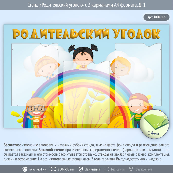 Стенд «Родительский уголок» с 3 карманами А4 формата (DOU-1.3) в Кызыле купить