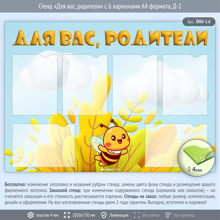 Стенд «Для вас, родители» с 6 карманами А4 формата (DOU-1.6) в Кызыле купить