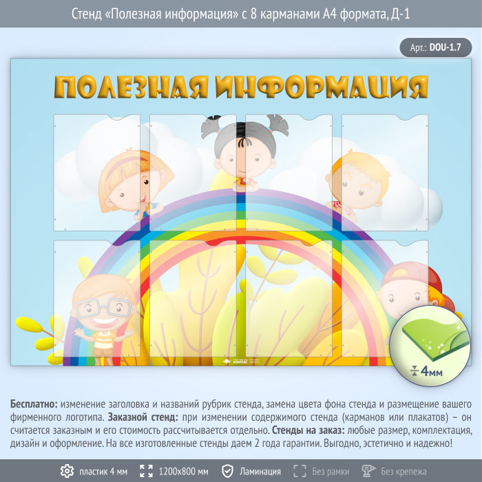 Стенд «Полезная информация» с 8 карманами А4 формата (DOU-1.7) в Кызыле купить